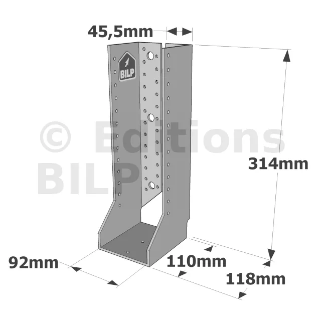 Grands sabots à ailes intérieures, gamme GSI CLASSIQUE (épaisseurs 4mm, profondeur 110mm) - Réf. GSI720/92/4