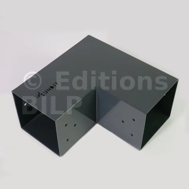 Il est utilisé dans un angle extérieur. Ce connecteur va permettre de raccorder une poutre 90x90mm perpendiculairement à une autre poutre ou à un poteau vertical 90x90mm.