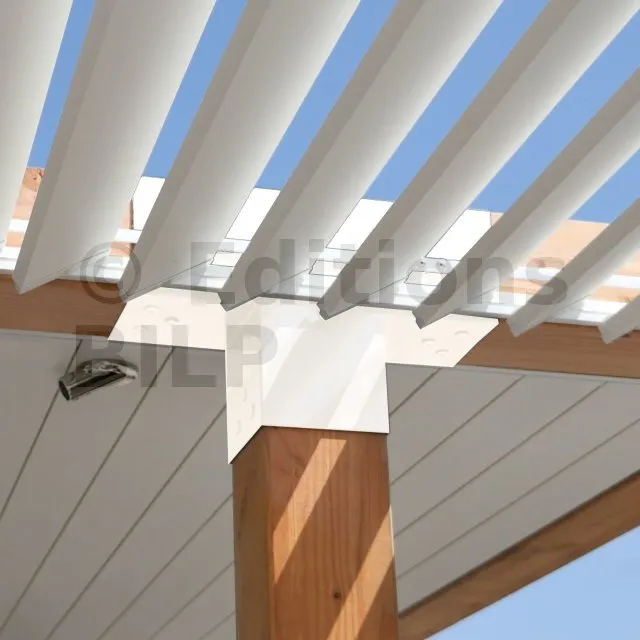 Il permet également la connexion d’une longue poutre de 120x120mm à un poteau intermédiaire de 120x120mm.