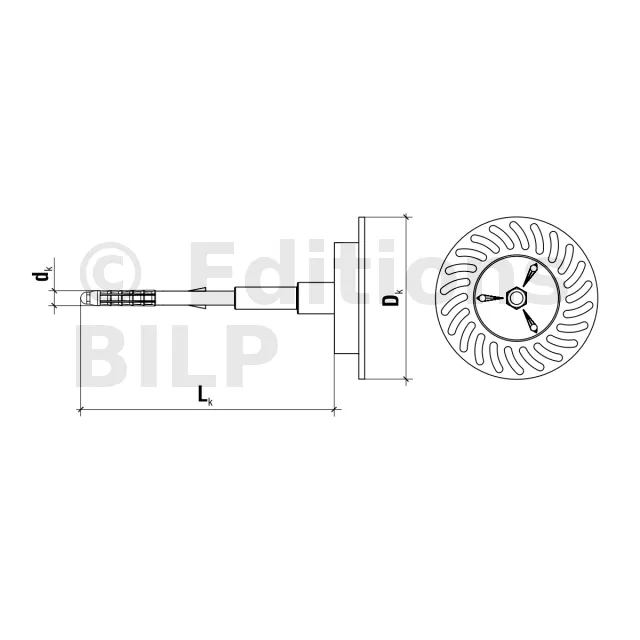 Cheville d’isolation à visser avec clou métal et rondelle d’appui télescopique pour la laine minérale - Diamètre 8mm - Réf. ECODRIVE-W-08350(50)