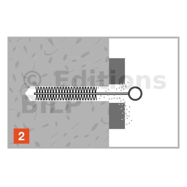 - Montage au travers de l’élément à fixer, Ø de perçage = Ø de cheville,