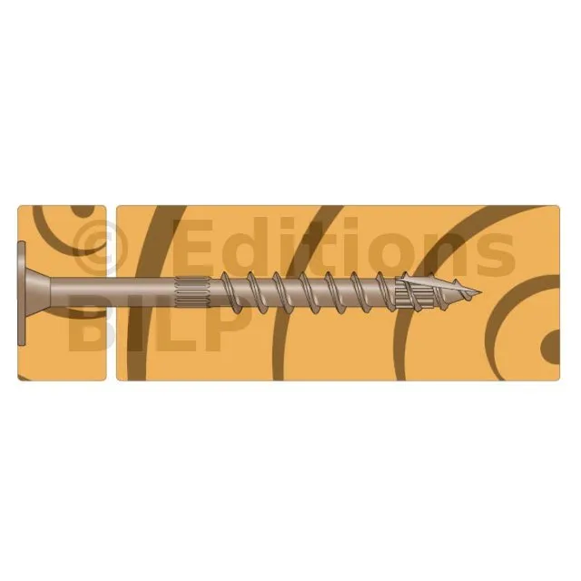 - Une vis dont l’axe est de 45 à 90° du fil du bois dans le cas des ESCR(XXX), et à 90° du fil du bois pour les autres vis.