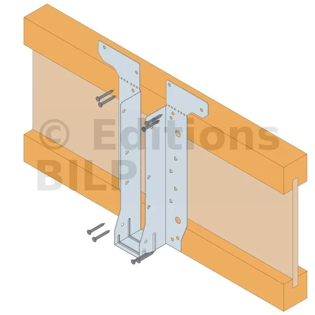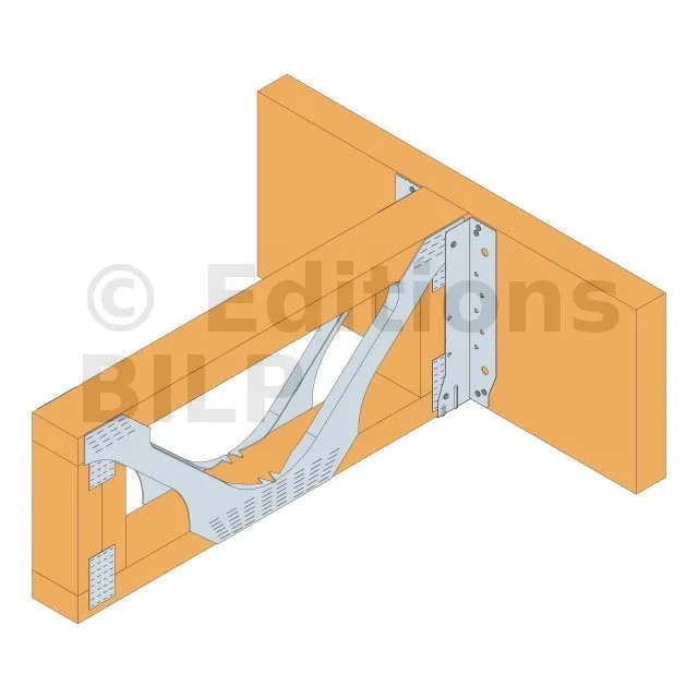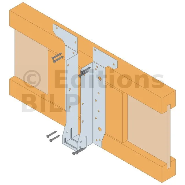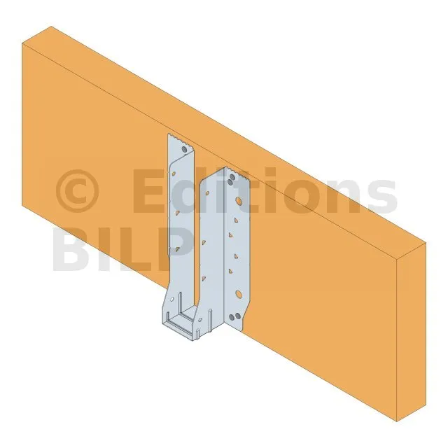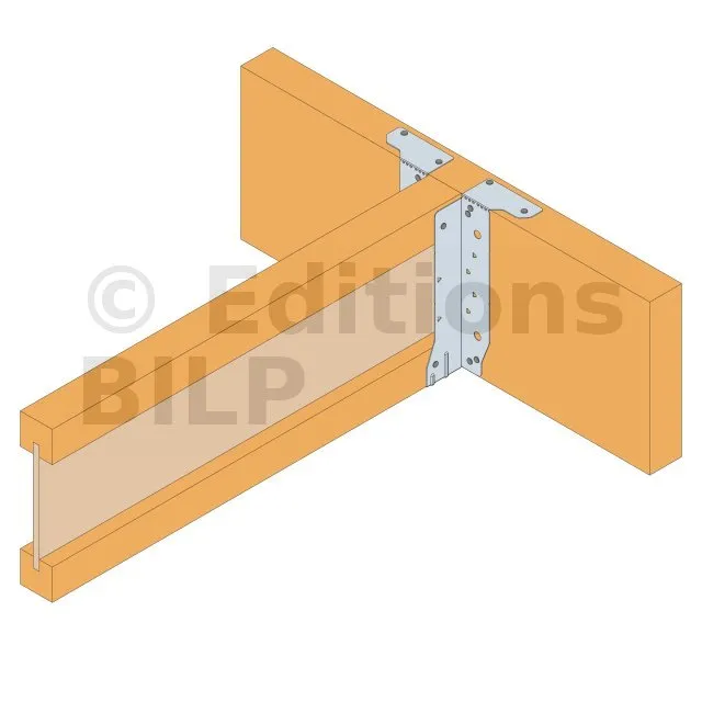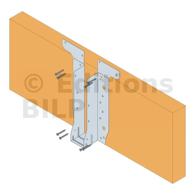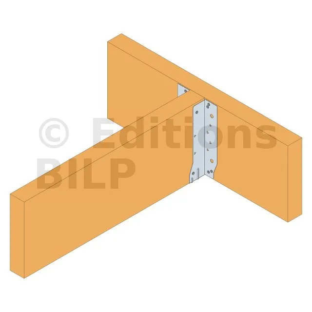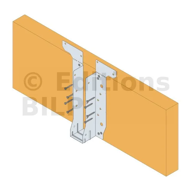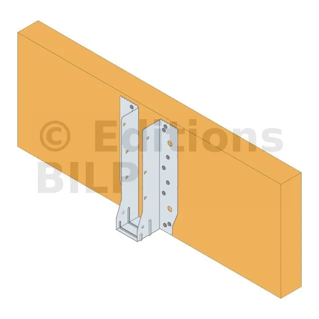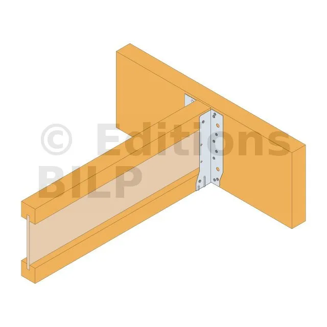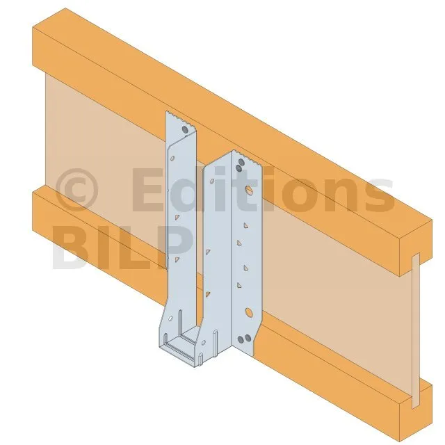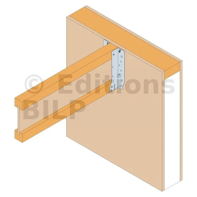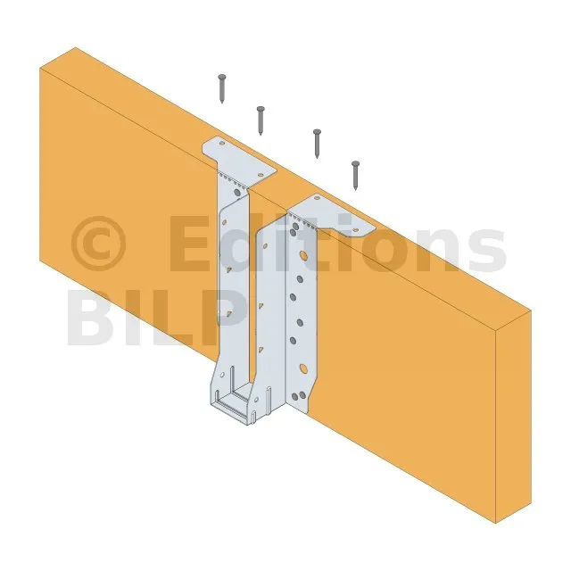 - Cette languette peut être pliée vers le haut pour les cas où le bas de solive n’est pas aligné sur le support.
