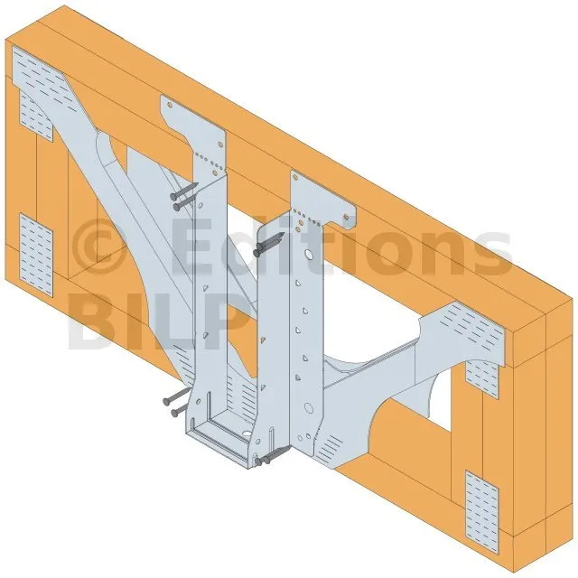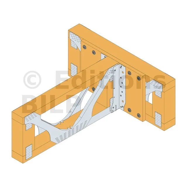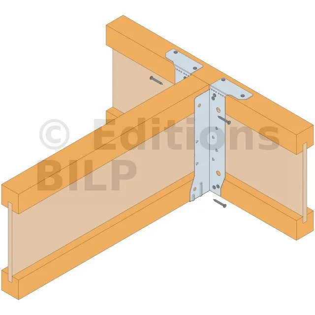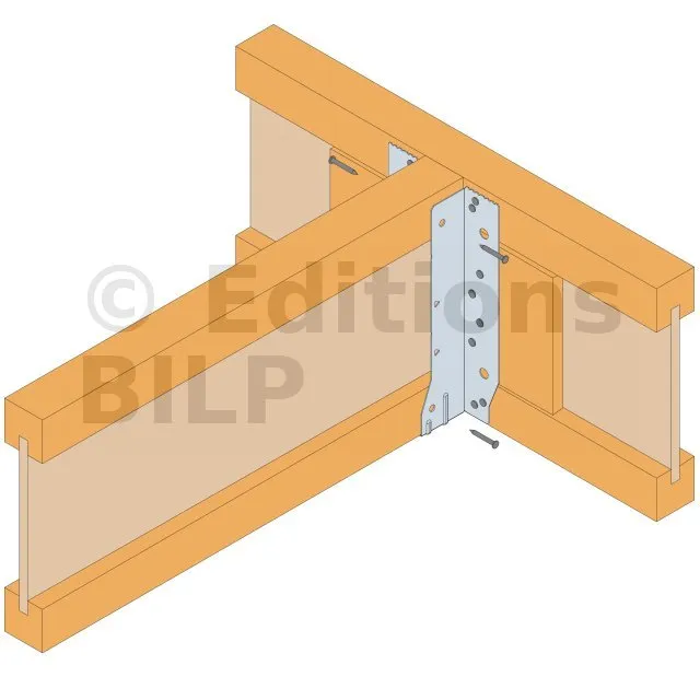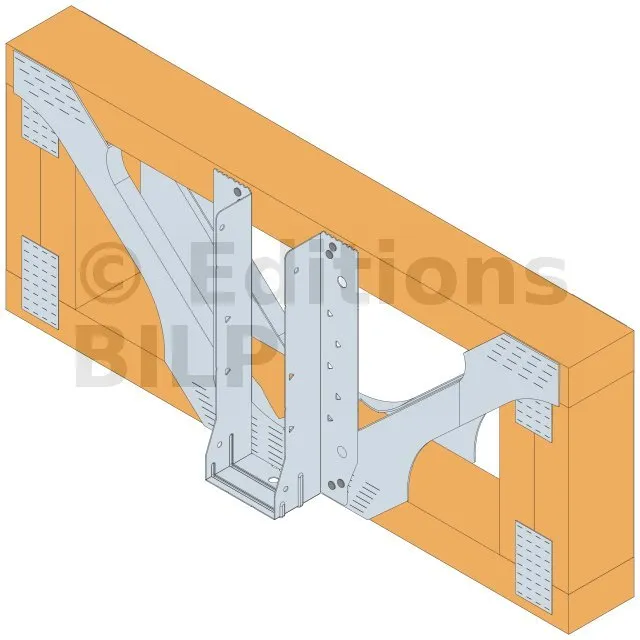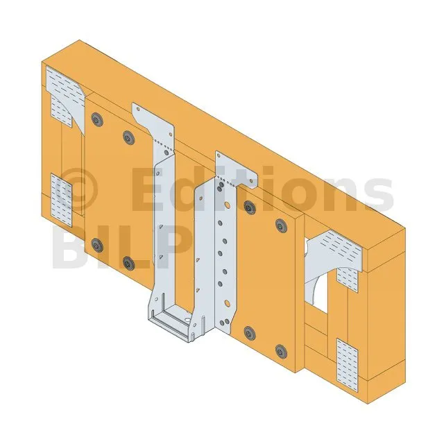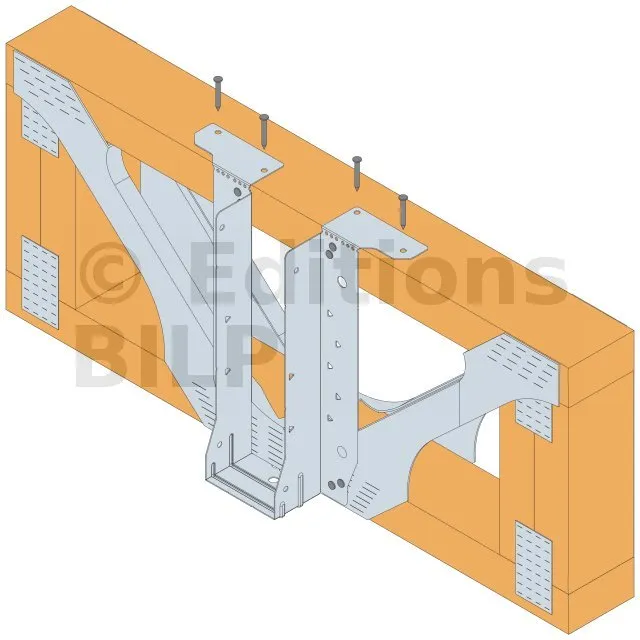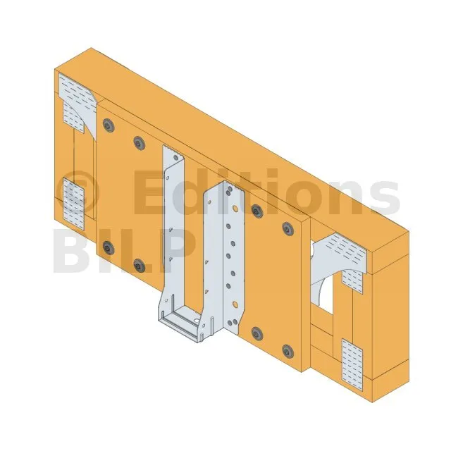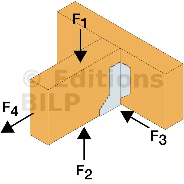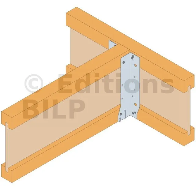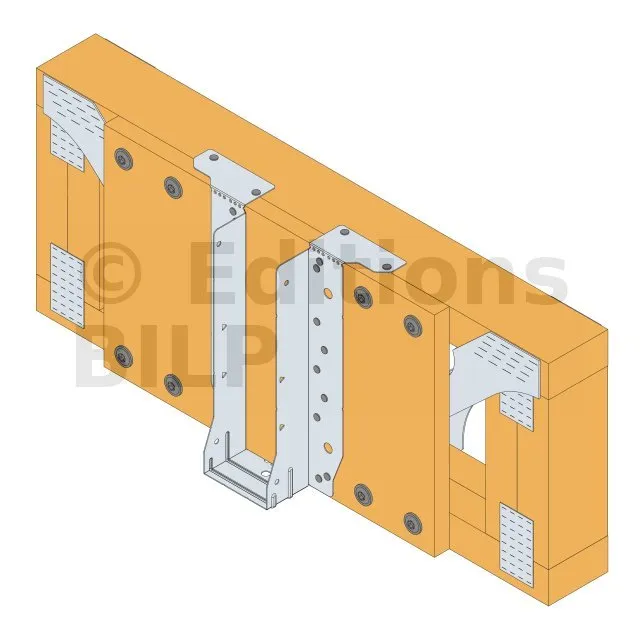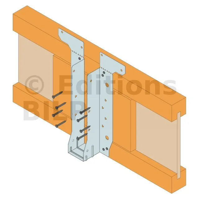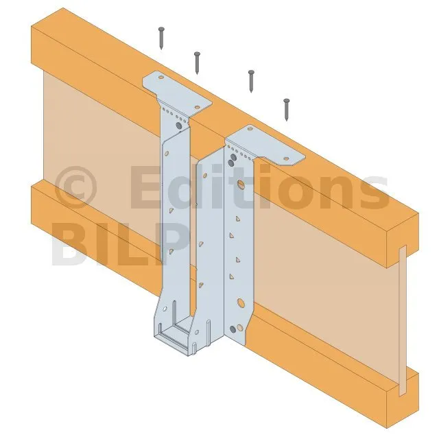 - Cette languette peut être pliée vers le haut pour les cas où le bas de solive n’est pas aligné sur le support.