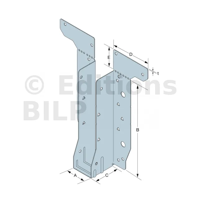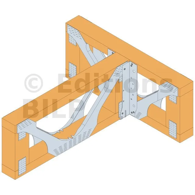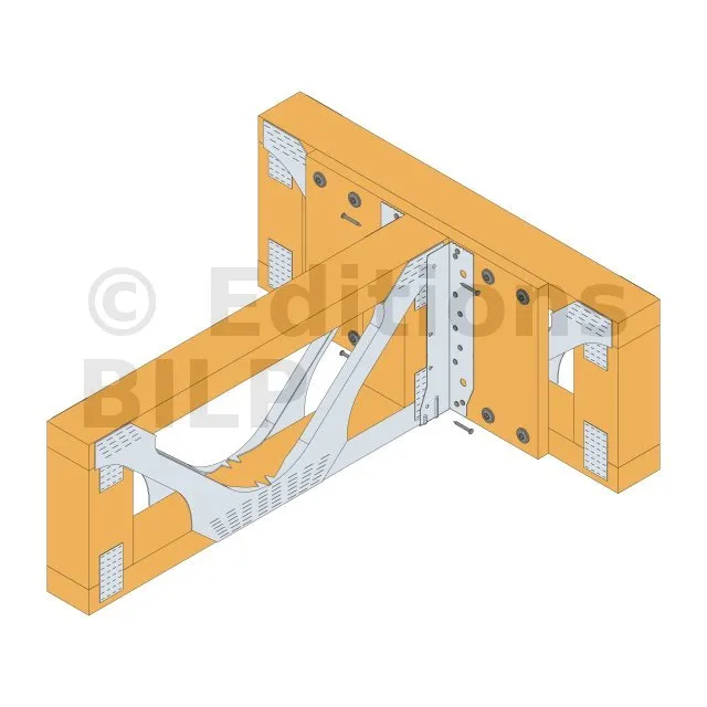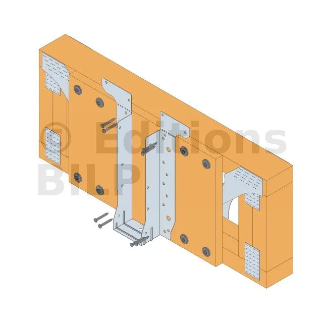 - Étrier fourni avec ses brides supérieures droites, pliables sur chantier afin de s’adapter à toutes les hauteurs de solives,