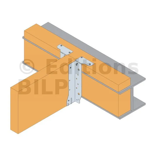 Fixation par les brides supérieures sur une poutre métallique ajourée avec renfort bois