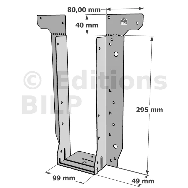 - Étrier fourni avec ses brides supérieures droites, pliables sur chantier afin de s’adapter à toutes les hauteurs de solives,