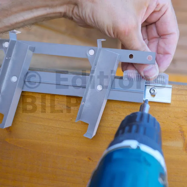 Distance entre les supports : À supposer que le mécanisme est fixé entre deux poutres, la distance entre ces deux poutres doit être égale à la longueur des lames + 35mm : 2 X 15mm (largeur du corps de mécanisme) + 5mm de jeu.