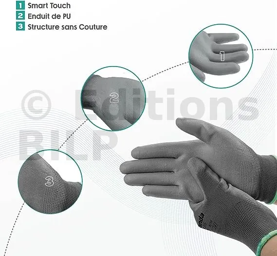 - Les gants ANDANDA ne sont pas recommandées pour les travaux lourds et les conditions huileuses/humides.