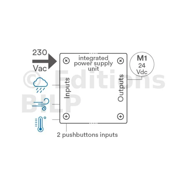 Boitier de commande 1 sortie 24V + alim 80W intégrée + entrées pluie/vent/température - Réf. TVPLD868C80TT3C