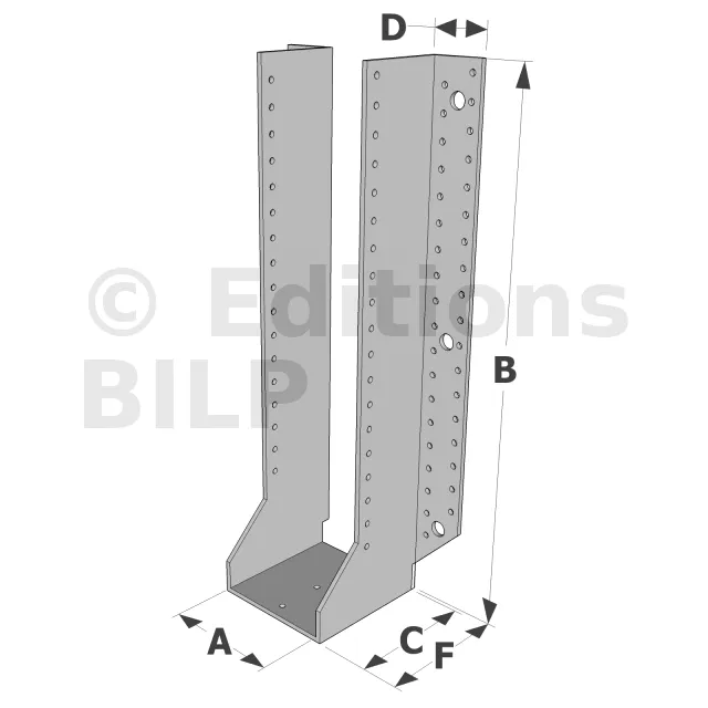 Les sabots GSE en acier galvanisé offrent une flexibilité grâce à des largeurs au choix selon les plages indiquées. Cette caractéristique permet de s’adapter parfaitement aux dimensions spécifiques des éléments de construction, garantissant une compatibilité optimale et une fixation stable.