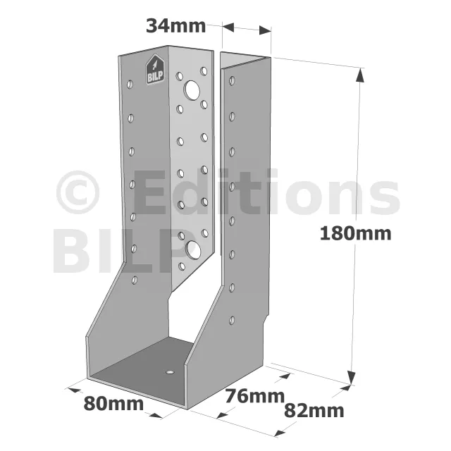 - Robustesse et discrétion : Grâce à leur conception en acier galvanisé, ces sabots sont robustes et résistent aux conditions climatiques difficiles. Les ailes intérieures permettent une intégration discrète, préservant l’esthétique de la structure.