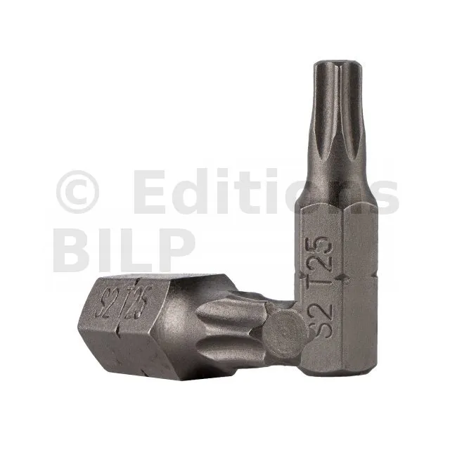 Embout T25 25mm (Qualité Professionnelle, Acier S2) - lot de 1 embout - Réf. EmboutT25_1