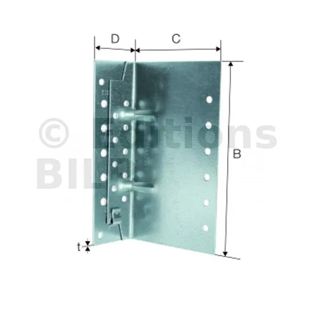 Le sabot deux éléments ajustables est utilisé pour une fixation bois sur bois. Il s‘adapte à la largeur de la poutre mais aussi en hauteur. Il suppose une grande flexibilité de montage, permettant de réaliser des assemblages droits ou en pente. Son système de montage original permet une grande facilité d‘utilisation.