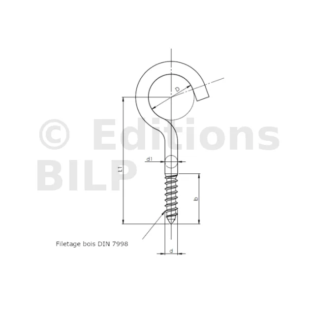 Piton ouvert à filetage bois - Réf. 07063505002