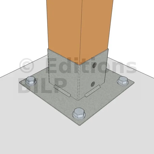 Il permet la fixation des poteaux sur une dalle ou un plot en béton.