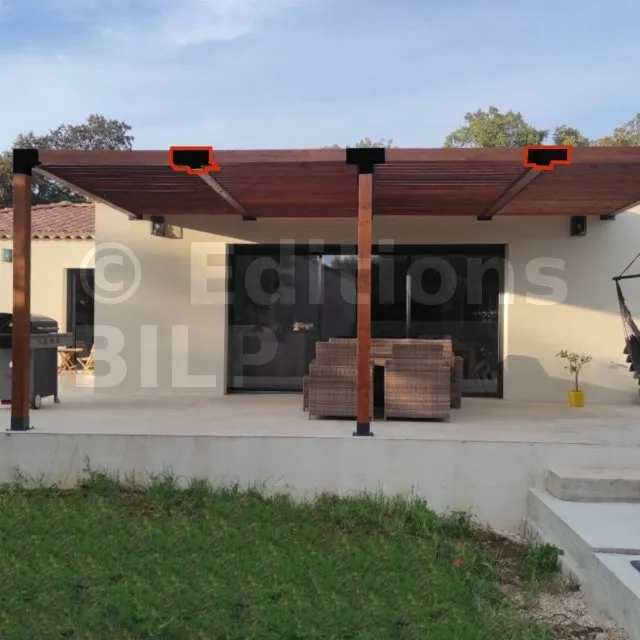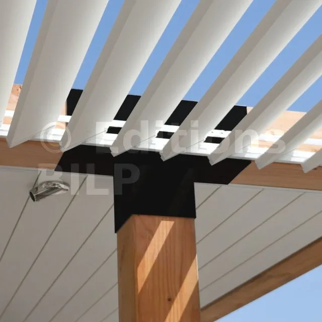 Il permet également la connexion d’une longue poutre de 120x120mm à un poteau intermédiaire de 120x120mm.