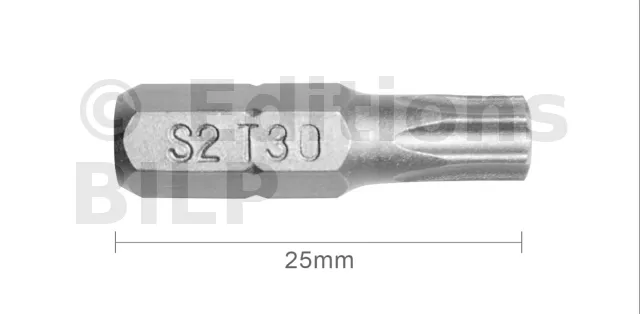 Embout T30 25mm (Qualité Professionnelle, Acier S2) - lot de 20 embouts - Réf. EmboutT30_20