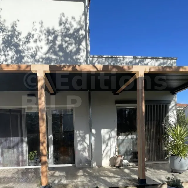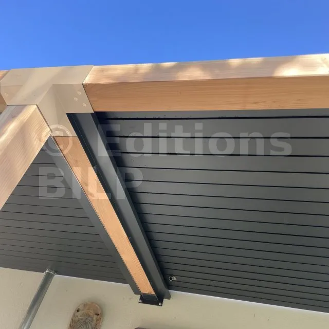 Il permet de raccorder une poutre de 90x90mm perpendiculairement à un chevron de 90x90mm, le tout étant supporté par un poteau vertical de 90x90mm.