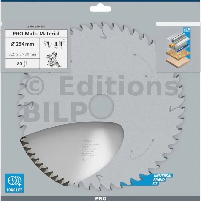 Lame de scie circulaire PRO 254 x 30 x 3.2 mm - 80 dents - Multi matériaux - Réf. 2608640450