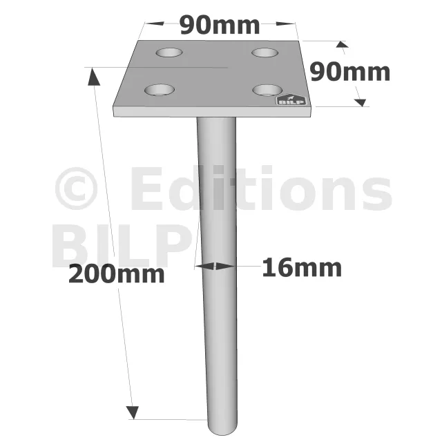 Pieds de poteau à sceller simple platine - Réf. PPSP90_20
