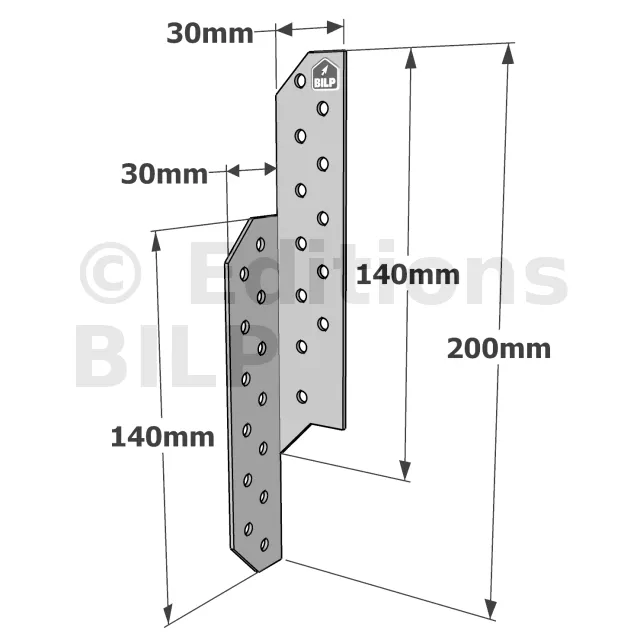 Patte de solivage GAUCHE - 30x200x1.5mm - Réf. PSG200/30/1.5