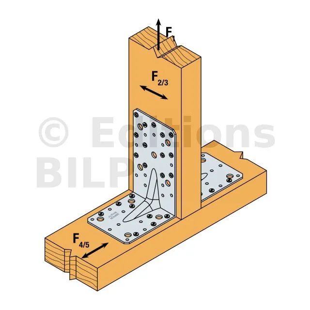 - Fixation bois/bois - type poteau/poutre2 équerres ; Aile A : 10 ; Aile B : 8 ; type : Pointes annelées CNA Ø4.0x35 ou Ø4.0x50 mm