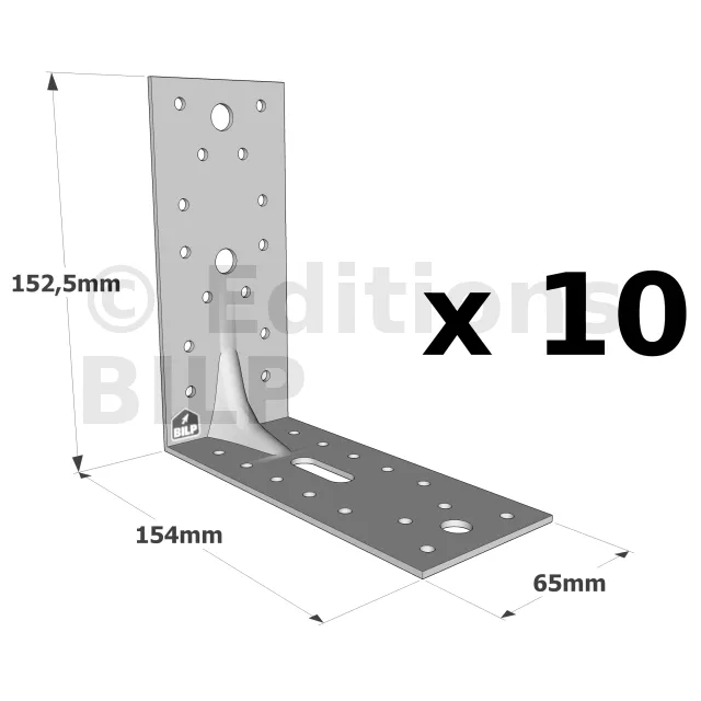 Équerres renforcées CLASSIQUES asymétriques pour le BOIS et le BETON - Réf. E9/2.5_10