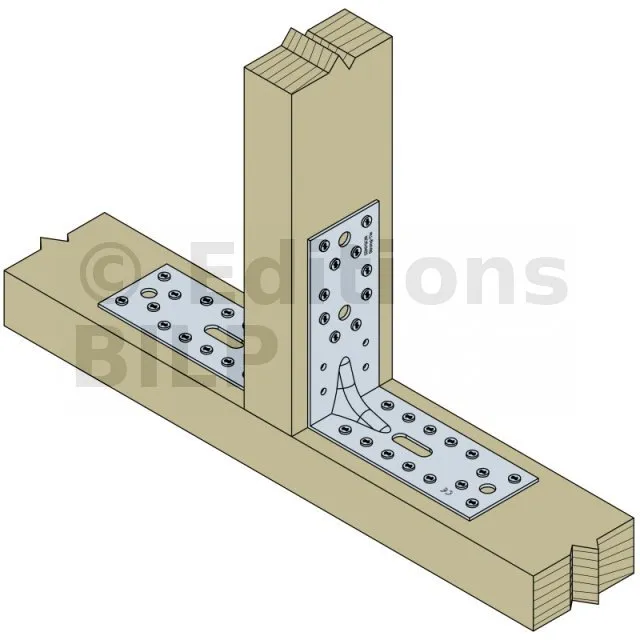 - Fixation bois/bois - type poteau/poutre2 équerres ; Aile A : 10 ; Aile B : 8 ; type : Pointes annelées CNA Ø4.0x35 ou Ø4.0x50 mm