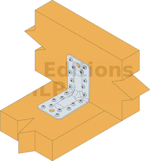 Les équerres renforcées E9S permettent des liaisons structurelles d’élements de charpente ou de montants d’ossature bois en MILIEU HUMIDE.