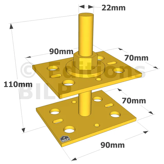 De petite dimension, les petits pieds de poteaux réglables APB7090 sont particulièrement adaptés à la fixation de garde corps ou de planchers chauffants.