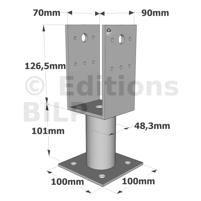 Pieds de poteau en U avec platine - Réf. PPUP90