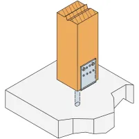 | Pied en âme + platine PPSDT | Lame centrale dans fente du poteau | Conçu pour efforts de soulèvement ; grande robustesse ; galvanisé | Demande entaille centrale ; pose plus technique | Poteaux de charpente lourde, zones ventées |