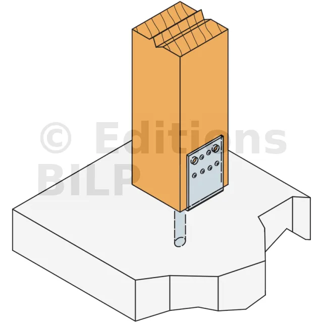 4. Le pied de poteau peut aussi être noyé dans le béton au moment où ce-dernier est coulé.