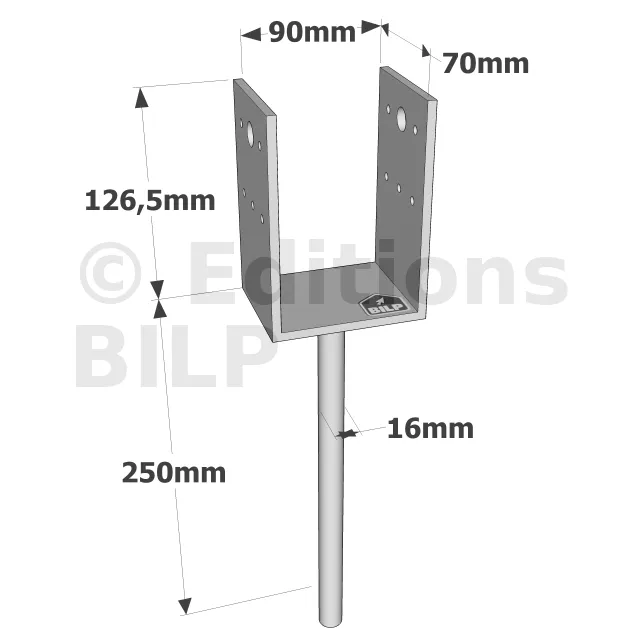 Pieds de poteau en U à sceller - Réf. PPD90/70G_10