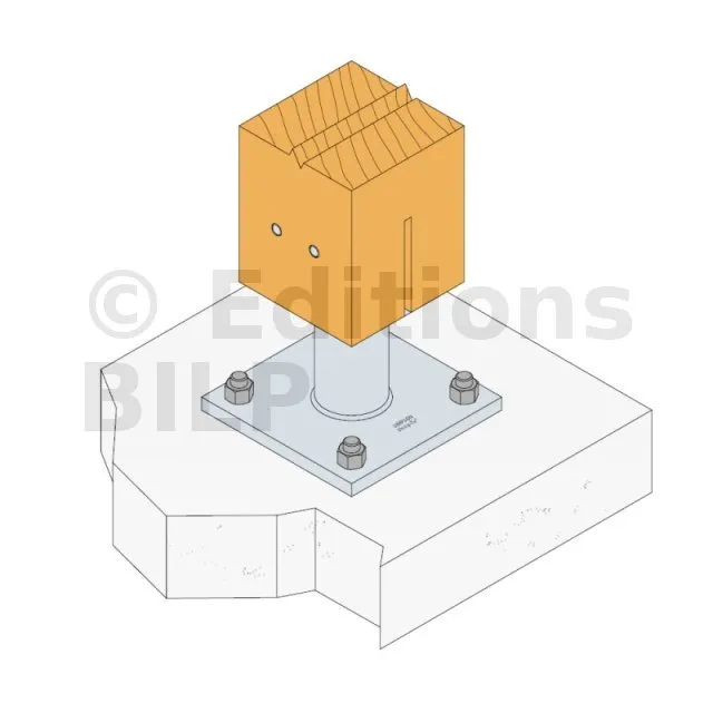 - Connexion bois sur support rigideSur poteau : 2Ø12 (broches STD) ; sur béton : 4Ø16 (goujons WA ; tige filetée)