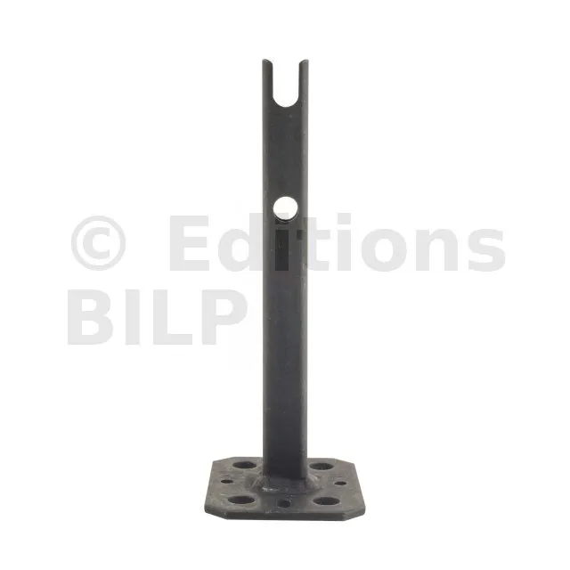 - Protège le poteau bois de l’humidité en le surélevant du sol.