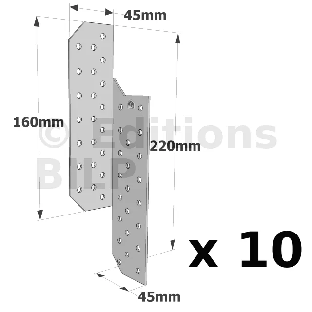 Patte de solivage DROITE - 45x220x2mm - Réf. PSD220/45/2_10