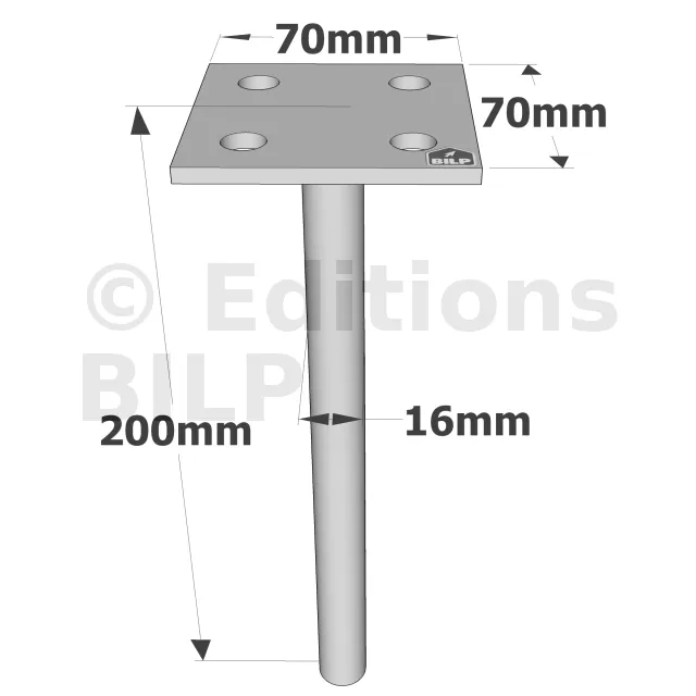 - MatériauAcier S235JR suivant NF EN 10025, finition galvanisation à chaud suivant NF EN ISO 1461