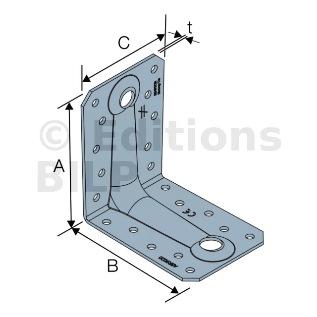 Équerres hypers RENFORCEES pour les larges sections de bois sur support BOIS et BETON - Réf. ABR9020