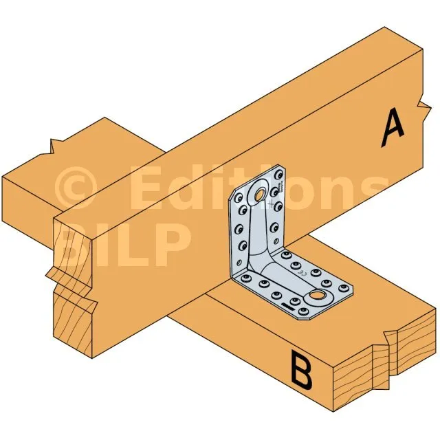 - Fixation BOIS/BOIS - clouage totalAile A : 8 ; Aile B : 10 ; type : Pointes annelées CNA Ø4.0x35 ou Ø4.0x50 mm, Vis CSA Ø5.0x35 ou CSA Ø5.0x40