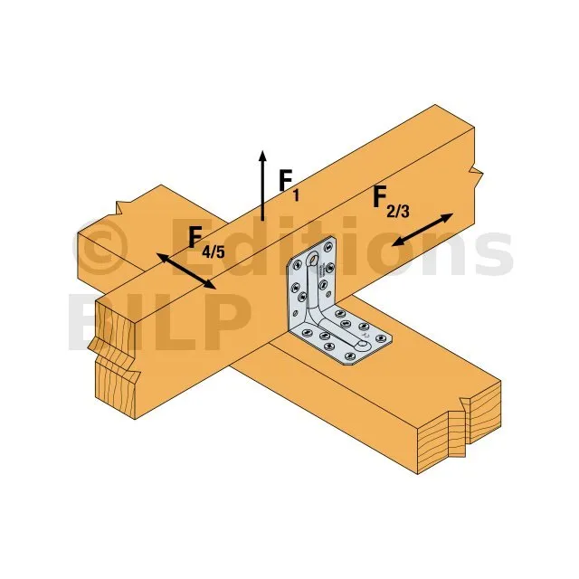 Pour obtenir les valeurs de résistance pour une seule équerre, il convient de diviser par deux les valeurs du tableau ci-dessus à condition que la poutre portée soit bloquée en rotation. Consulter notre ETE-06/0106 si la poutre est libre en rotation.