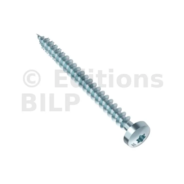 HECO-FIX-plus, tête ronde, T-Drive, filet total, zingué blanc, A2K, revêtement lubrifié, Dim. 6.0x40mm - Réf. 19367