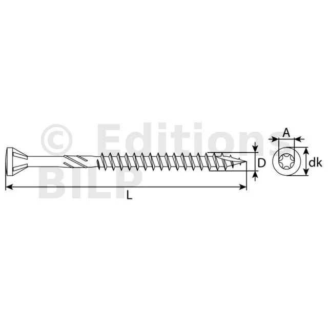 Vis pour lames de terrasse bois, tête fraisée autofraisante, inox A2, D5 L50 avec embout TX25 - Réf. 1817505010