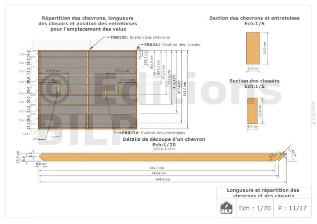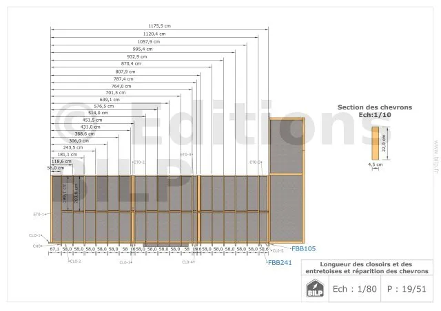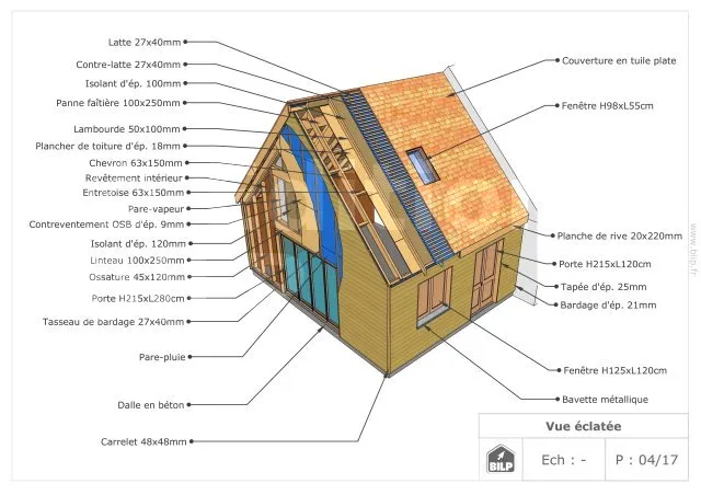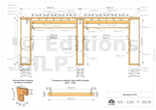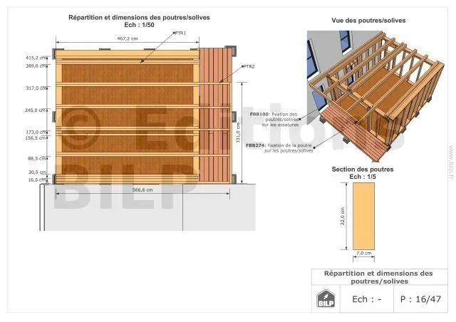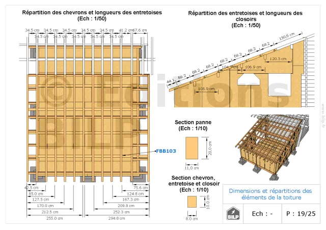 Les plans de structure à l’échelle sont faciles à lire et à comprendre. Ils vous permettrons de réaliser vous-même la structure de votre projet. Les détails de réalisation sont indiqués. Nous calculons et optimisons les dimensions et les sections de pièces de bois.