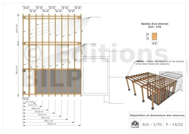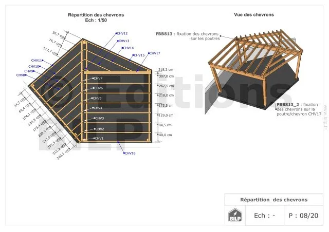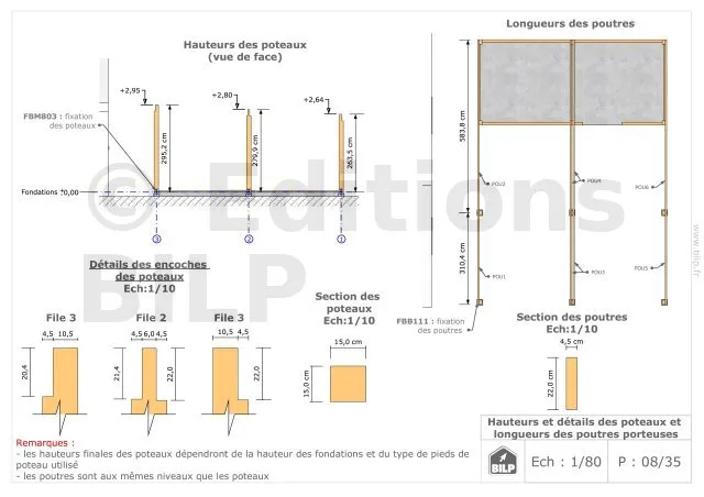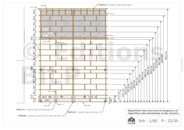 Les plans de structure à l’échelle sont faciles à lire et à comprendre. Ils vous permettrons de réaliser vous-même la structure de votre projet. Les détails de réalisation sont indiqués. Nous calculons et optimisons les dimensions et les sections de pièces de bois.