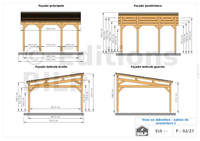 Nous réalisons tous types de Plans de Carports, Garages ou Préaux selon vos mesures et vos désirs. Ce dossier TECHNIQUE vous servira à CONSTRUIRE votre projet vous-même.