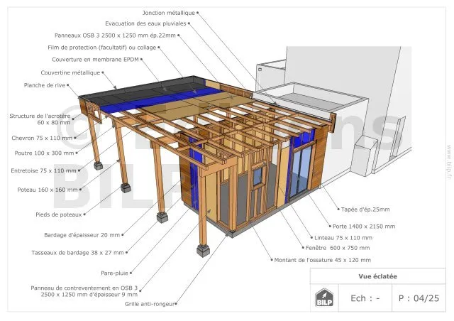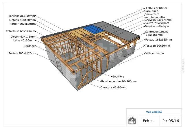 - ContenuPlans et vues ; nomenclature des matériaux ; notice de montage pas à pas ; animation vidéo ; support par un ingénieur