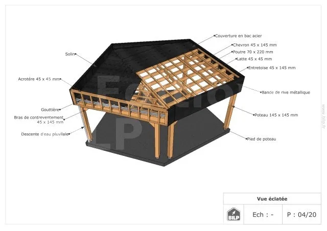 Le plan de votre CARPORT / PRÉAUX / AUVENT sur mesure - Réf. carport-prest-plans