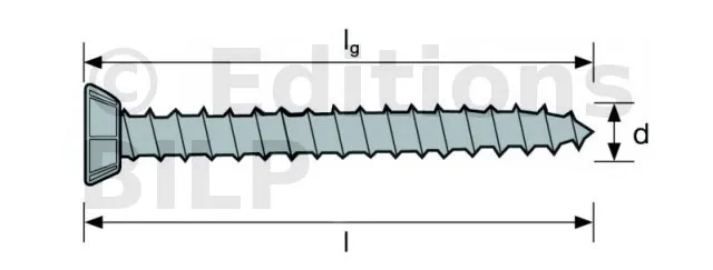- Son filetage garantit un excellent taraudage et une rapidité de pénétration du matériau support.